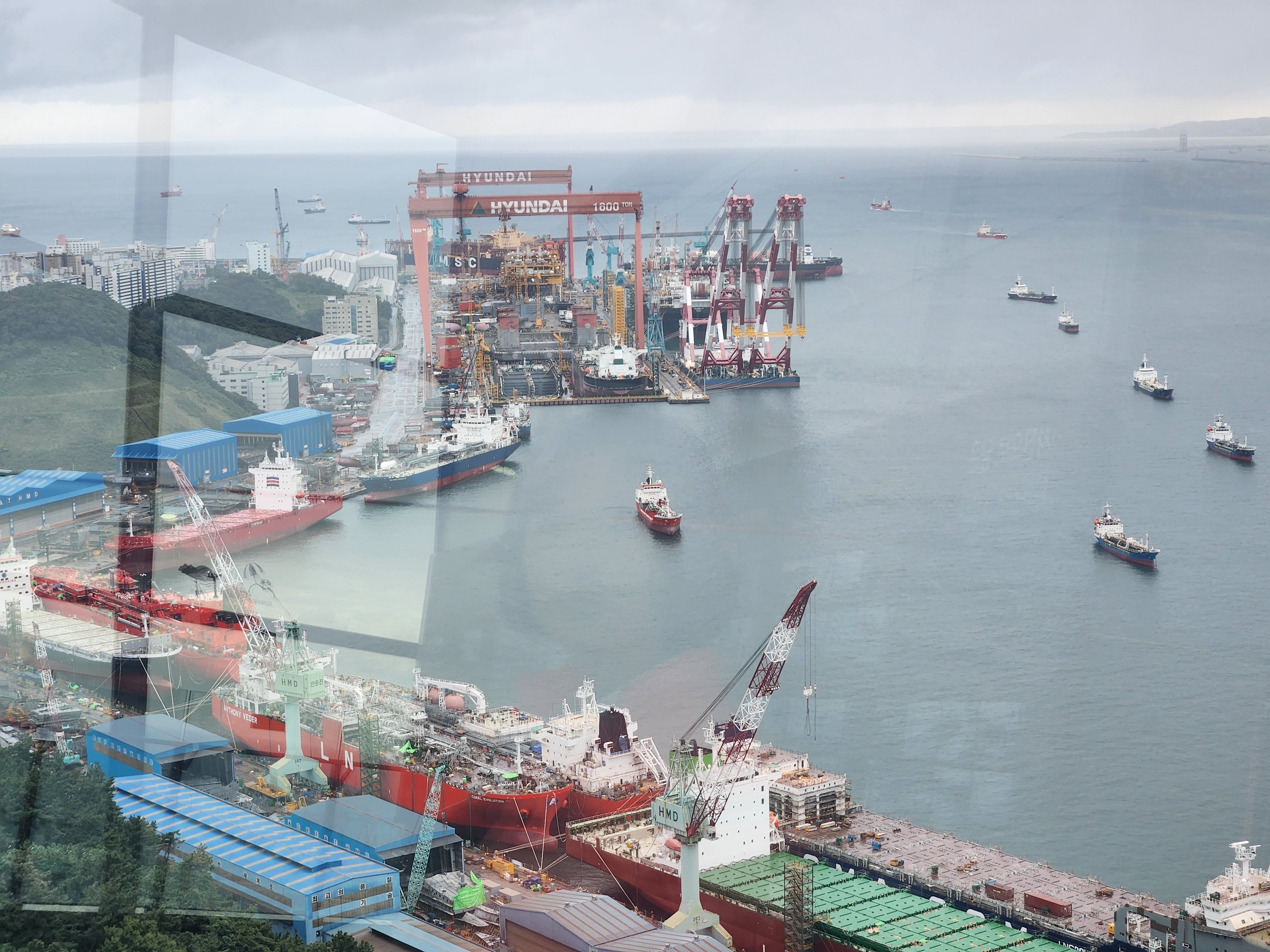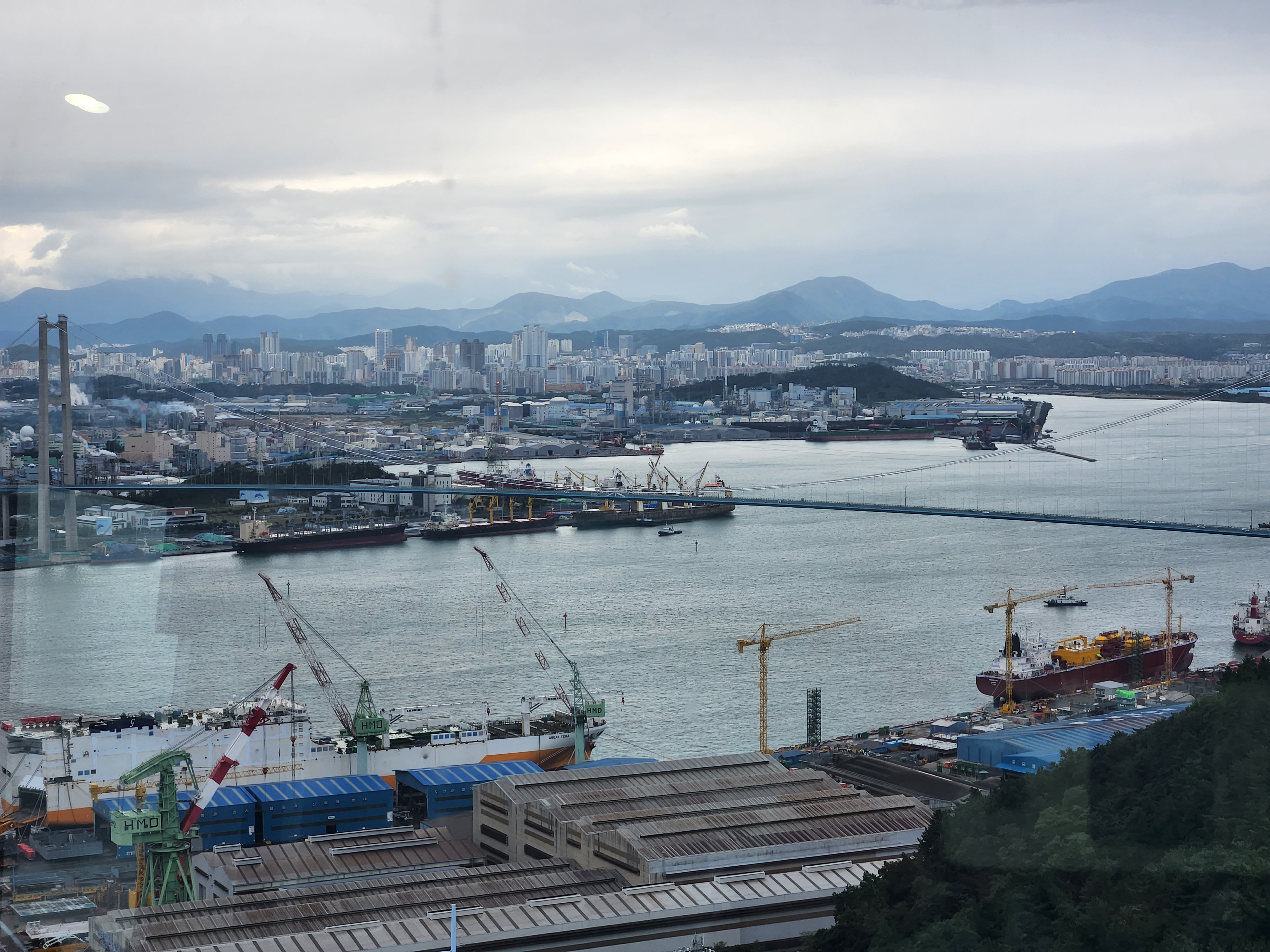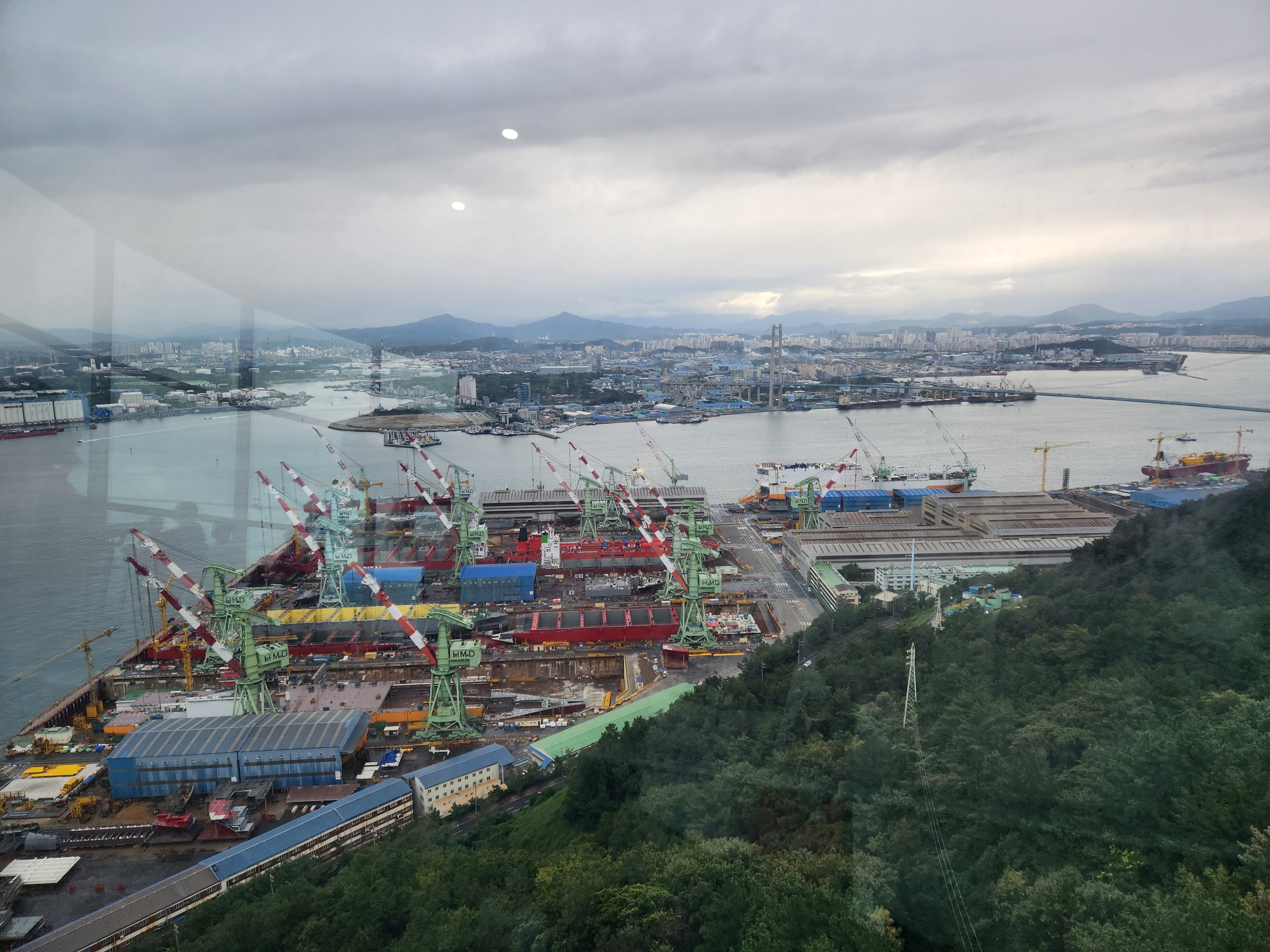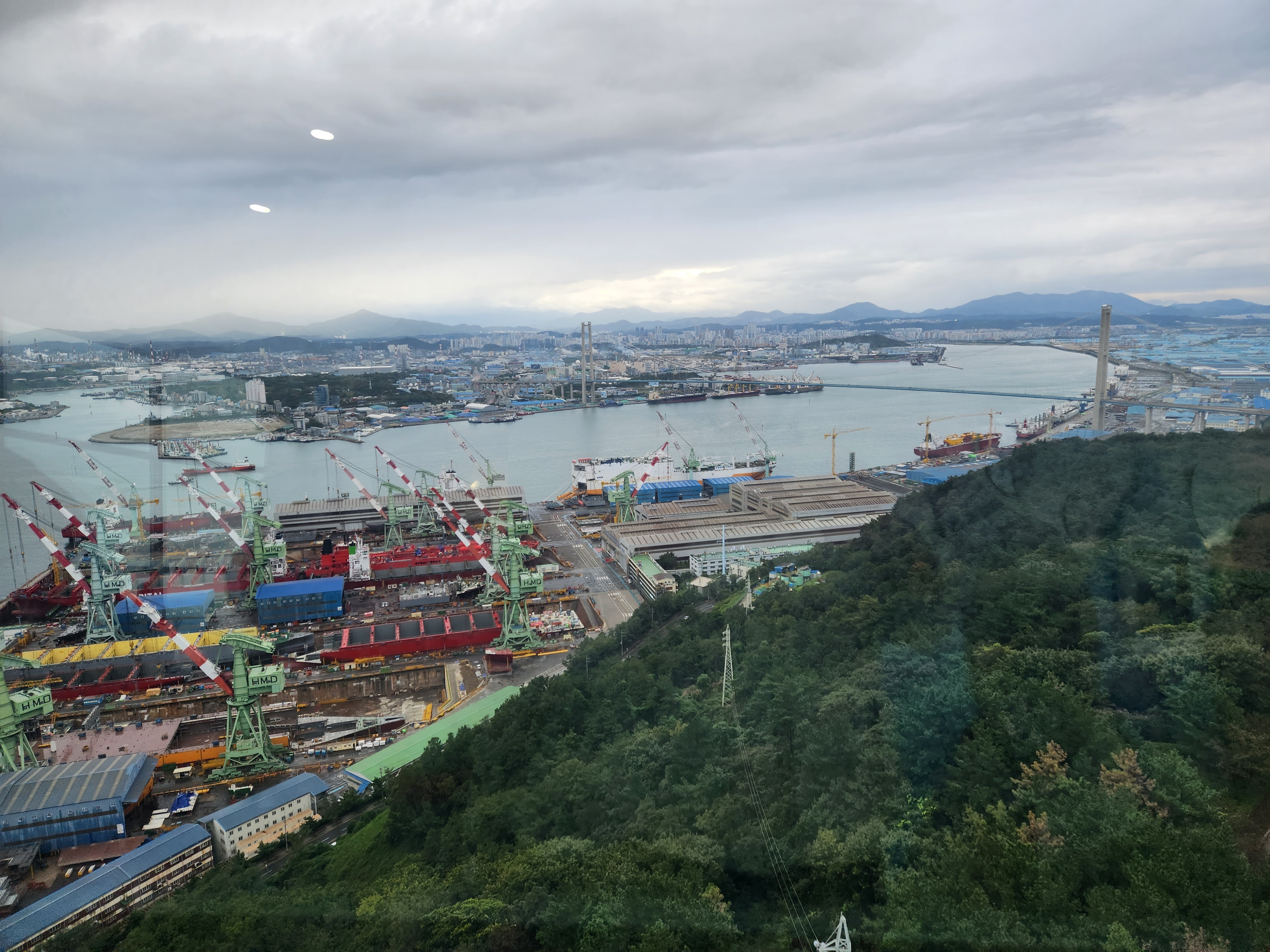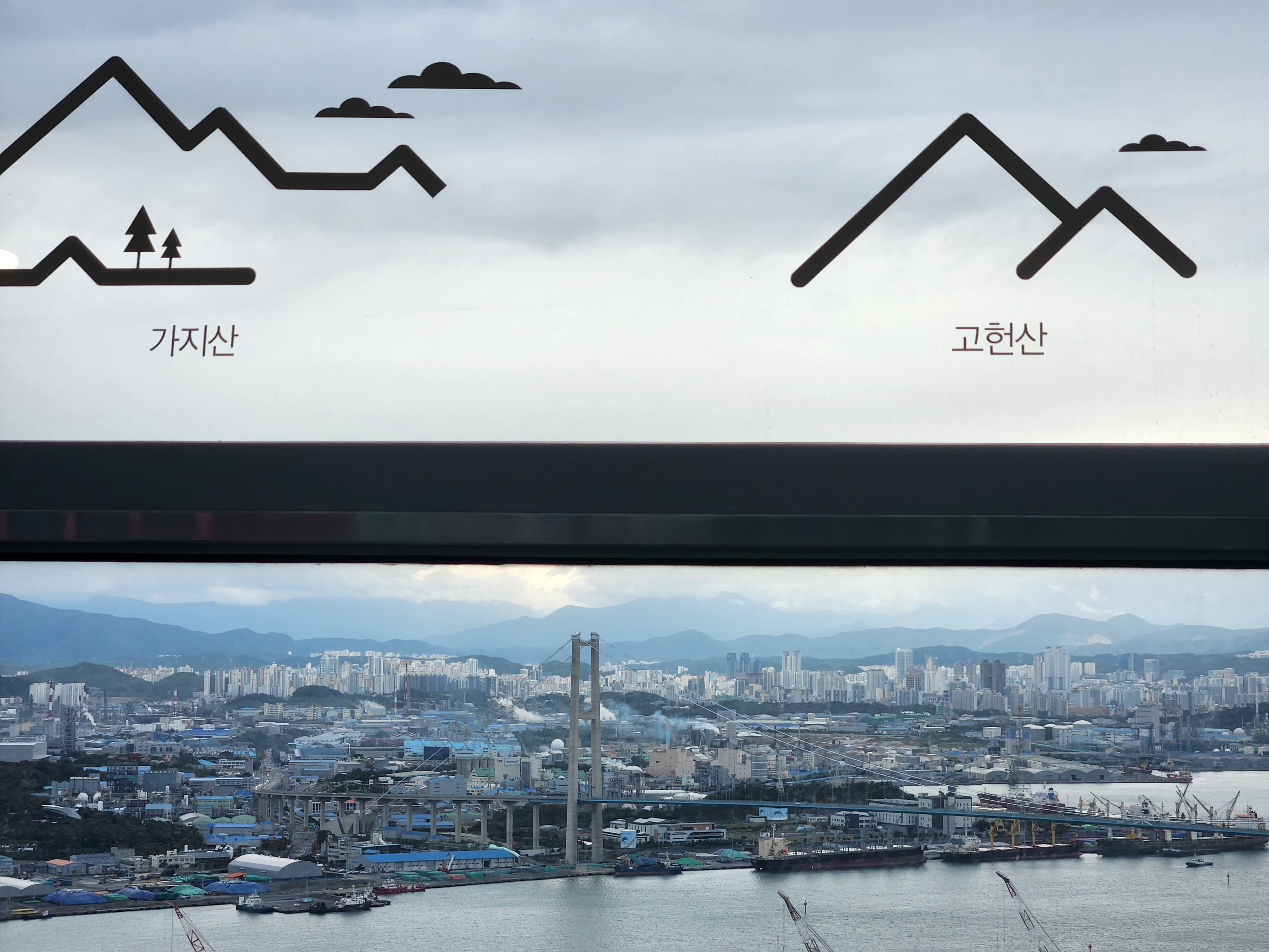 입장은 무료 였고, 1층에는 기념품을 판매한다. 당일 날씨가 소나기가 계속 와서 우산을 구매했고 귀여운 마그넷도 구매했다. 전망대로 올라가면 울산을 한눈에 볼 수 있어서 좋았다. 바다와 아파트 단지, 그리고 크고 작은 배들. 울산으로 이사가도 살만하겠다는 생각이 들정도였다.