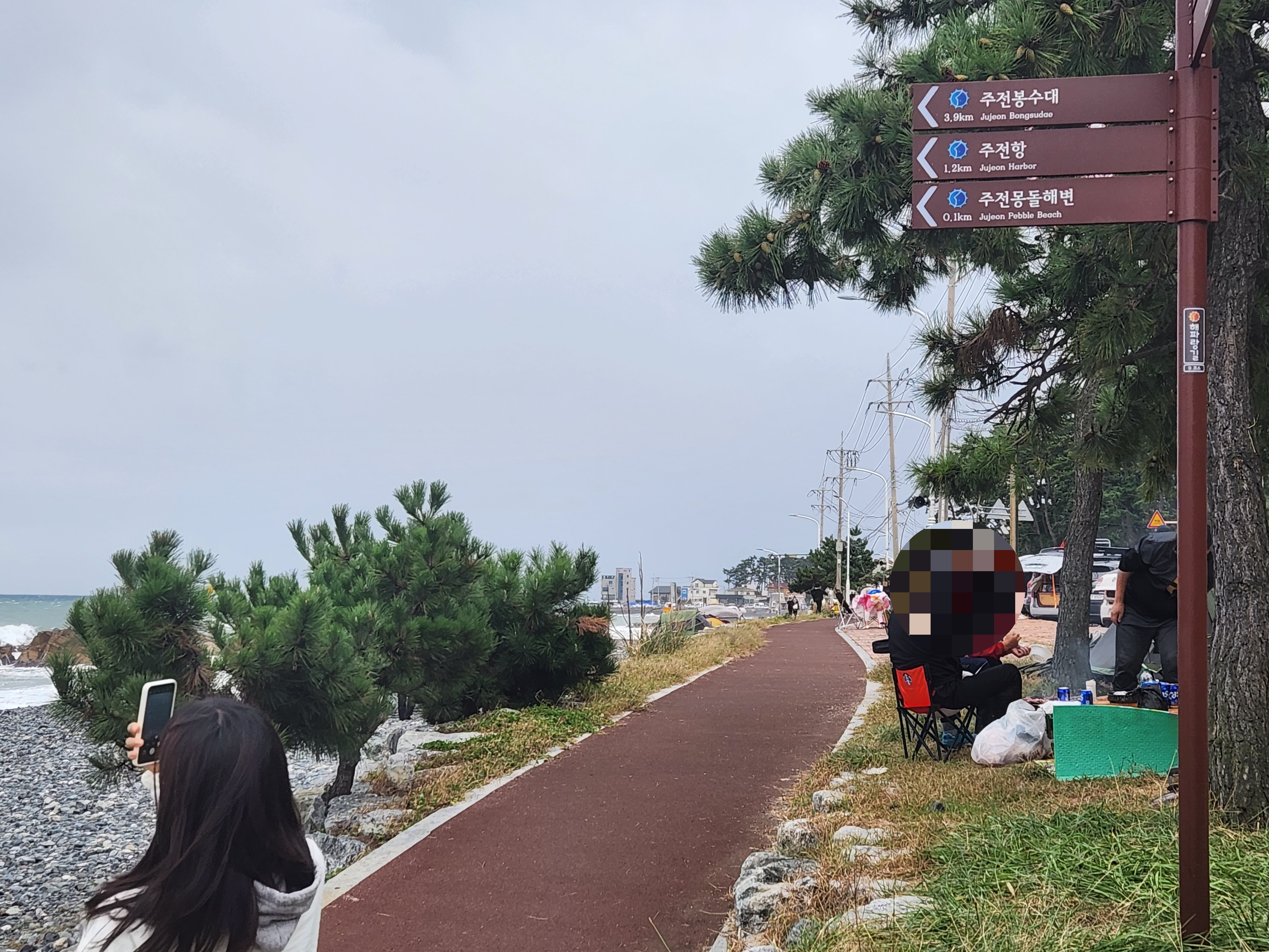바람이 많이 불었다. 주변에 텐트 쳐서 휴식하신분과 차박하시는 분들이 많았고 고기를 구워먹으시는 모습이 인상적이였다. 오랜만에 바다를 보니까 마음이 편안해졌다. :)