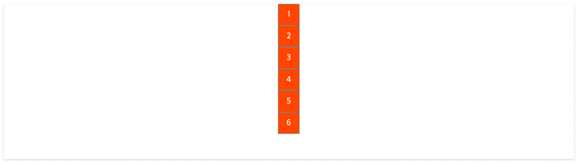 아래의 샘플 코드는 block 요소 div를 6개를 노출한다. 각 요소마다 한줄씩 자리 잡고 있다.
