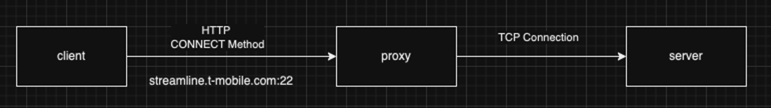 터널링은 http connect method를 이용한다. 어떻게 동작하냐면, 클라이언트는 http proxy server에게 도착지점과 tcp 커넥션을 연결하라고 부탁한다. 그 서버는 클라이언트 자격으로 커넥션을 만든다. 커넥션이 맺어지면, 프록시 서버는 클라이언트로 부터 tcp stream을 교환한다. 첫 요청은 http였지만, 추후 서버는 tcp connection을 프록시 하게된다.