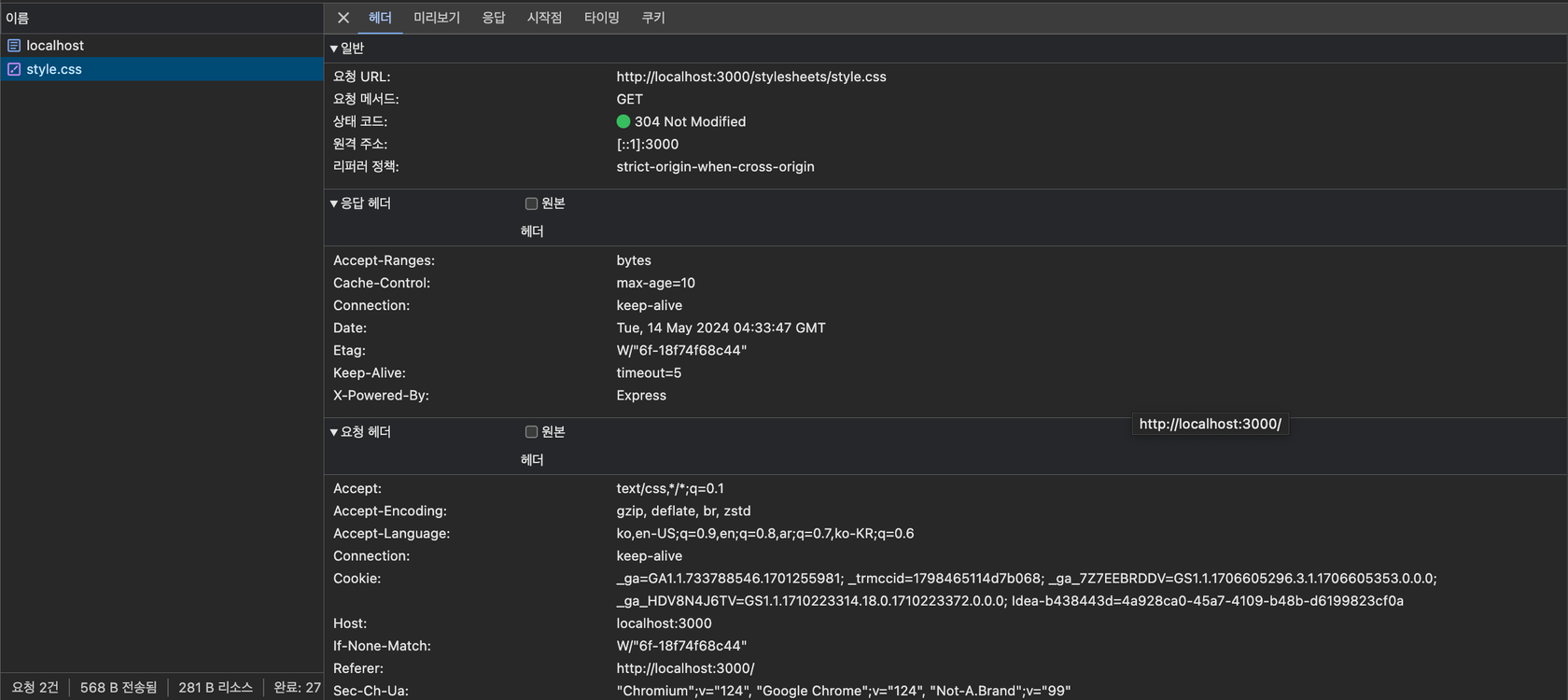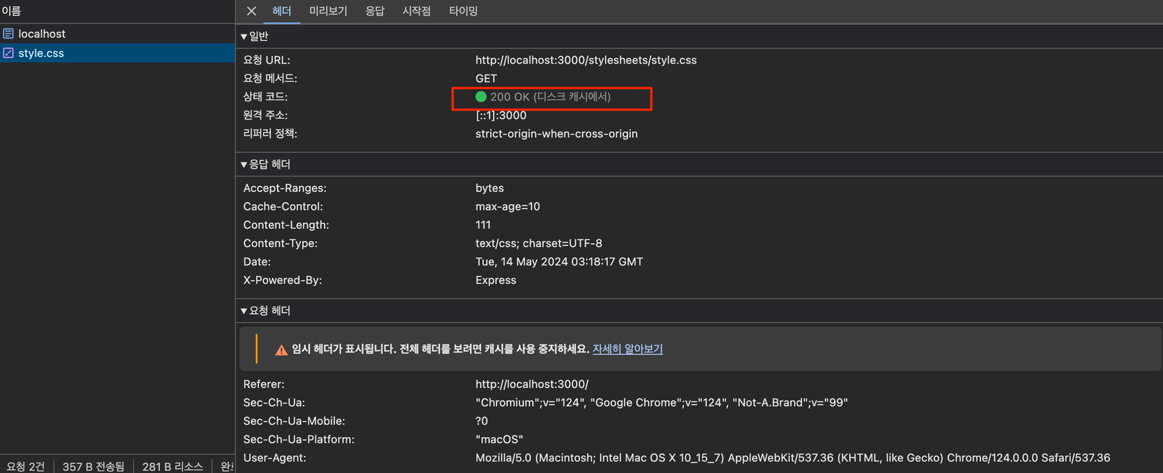 html doc은 cache 못타게 막고, css파일만 max-age를 이용해서 케쉬가 잘 되는지 확인해보았다
