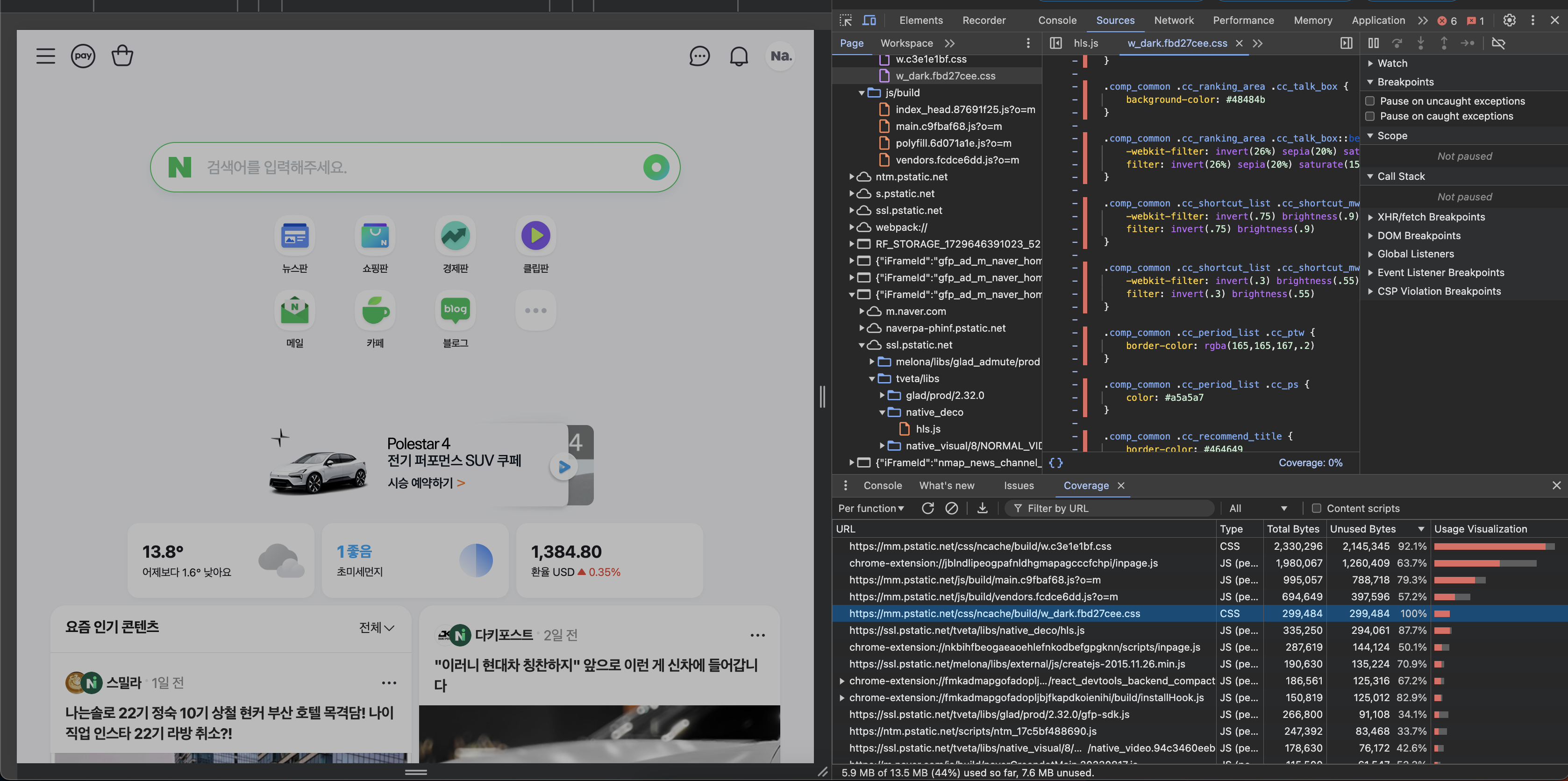 적용 범위: 사용되지 않는 자바스크립트 및 CSS 찾기 | Chrome DevTools | Chrome for Developers