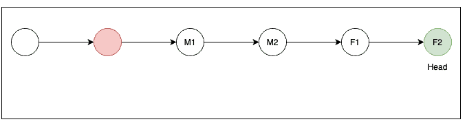 M branch 에서도 F1, F2커밋의 정보를 포함하고 싶다면 아래의 명령어를 이용하면된다.