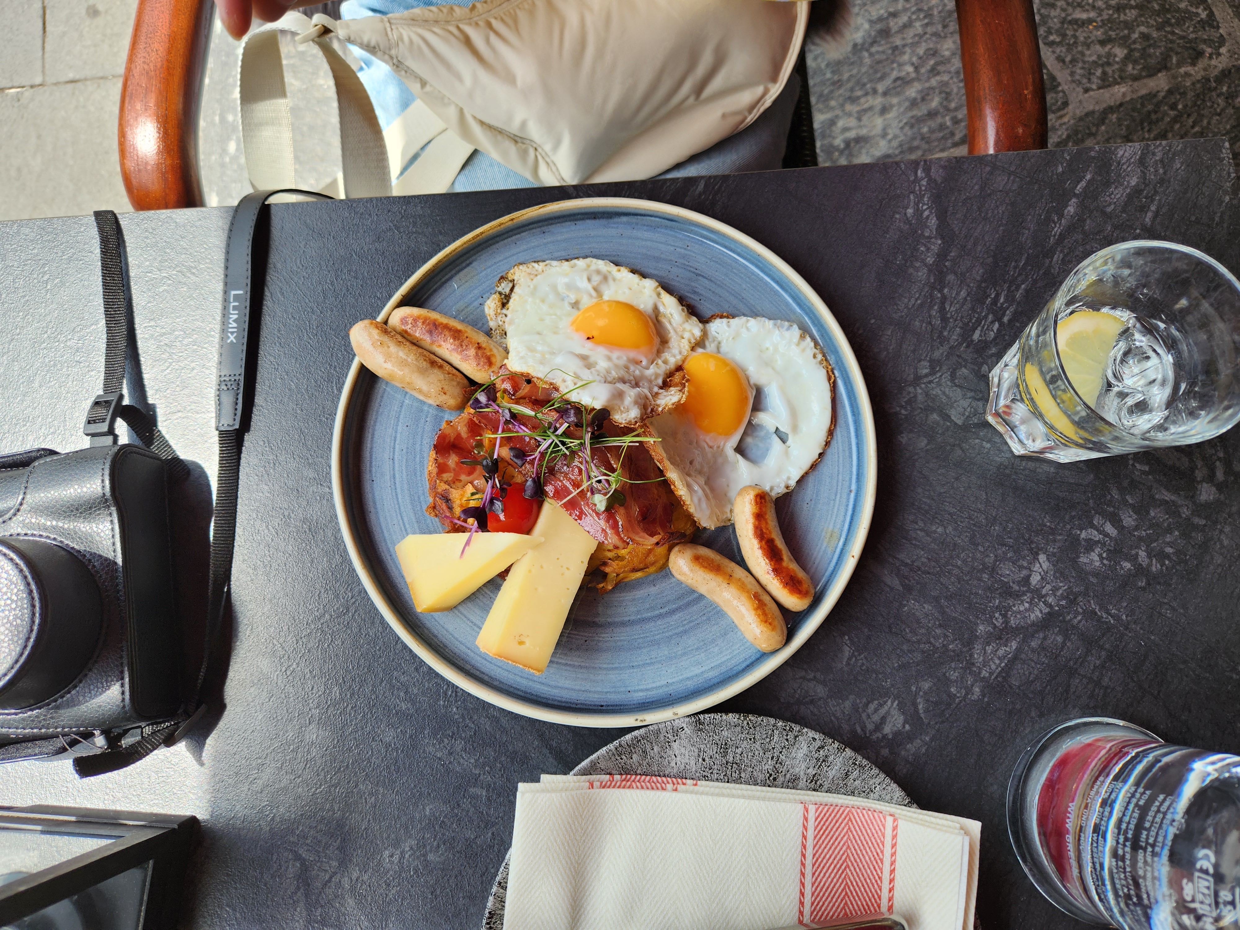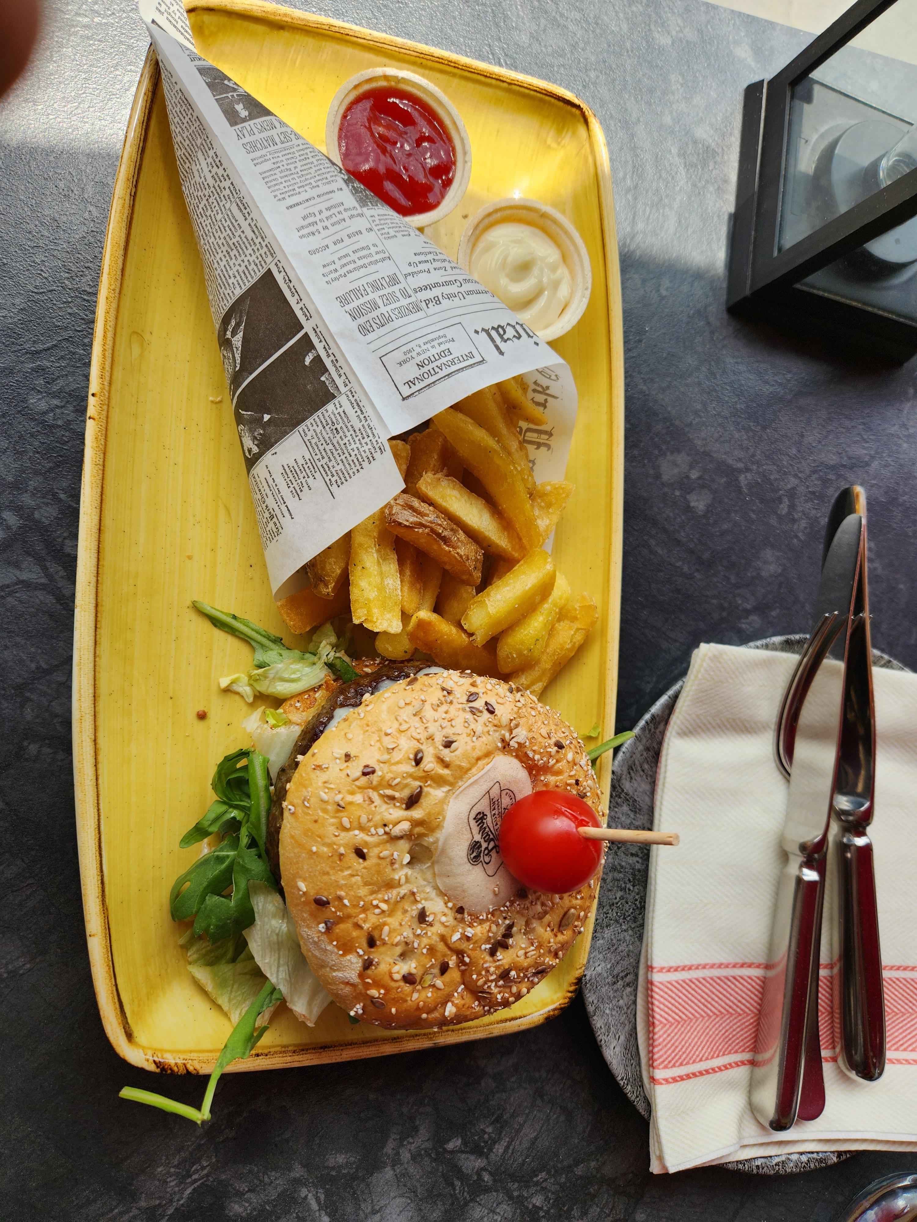 식사는 버거세트와 브런치 메뉴 하나 시켜서 먹었다. 음료는 탄산수로 정했다. 서버가 탄산수를 추천해서 마셨고 대만족했다. 생각 이상으로 감자튀김이 맛있었다.